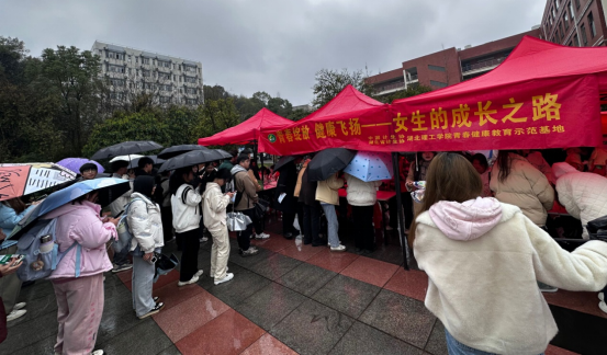 本网消息 春气萌动,春雨蒙蒙。3月18日下午,青春健康教育项目团队在学校中门广场开展“青春绽放 健康飞扬:女生的成长之路”主题宣传活动,共宣传服务学生1000人次,弘扬雷锋志愿服务精神,关爱女生青春健康。