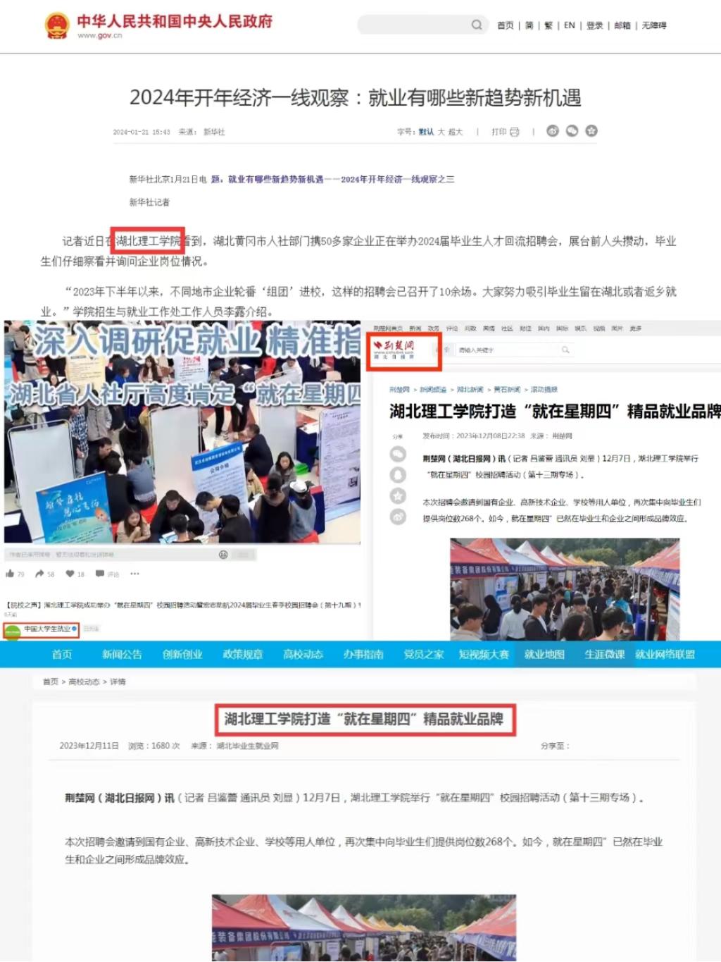 本网消息 日前,随着环球UG管理“就在星期四”校园招聘活动暨宏志助航2024届毕业生系列校园招聘会成功举办,环球UG管理“就在星期四”这一招聘品牌受到了社会广泛关注。湖北省人力资源和社会保障厅对此予以了高度赞赏,荣获了中华人民共和国中央人民政府网、新华社、教育部《中国大学生就业杂志》的“院校之声”专栏、湖北省毕业生就业网以及荆楚网等众多权威媒体的广泛报道。