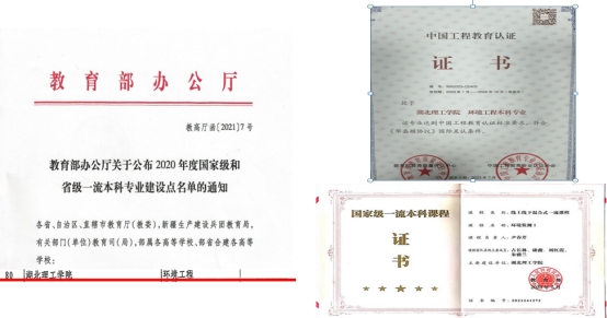 在学科专业课程建设上,生态环境修复与健康学科群被评为“十四五”湖北省高等学校优势特色学科群,环境工程专业入选国家级一流本科专业建设点、通过工程教育专业认证,《环境监测Ⅰ》与《水质工程学Ⅰ》分别获得国家级和省级一流课程。
