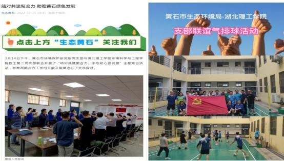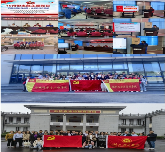 该支部从国家、省、市、校、院五个层面,围绕习近平生态文明思想,坚持绿色低碳发展,建设美丽中国;围绕湖北省加快建设全国构建新发展格局先行区,坚持长江经济带绿色发展,建设美丽湖北;围绕建设黄石市无废城市,打造山水宜居之城,建设美丽黄石;围绕学校建设特色鲜明的现代化应用型大学,致力于高质量应用型人才培养,建设美丽理工;依托学院40多年环境类高素质应用型人才培养质量与服务地方成效,建设美丽环境,明确了支部长期建设的工作理念“绿色低碳”和核心内涵“高质量发展”。