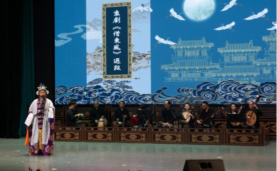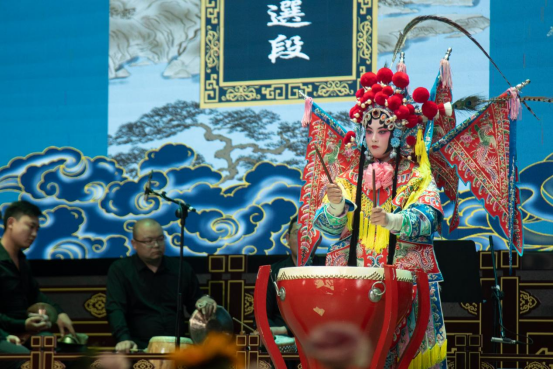 一开场,典雅优美的昆曲《牡丹亭》为大家带来了惊艳和震撼,现场观众被剧中花神的表演所深深折服!京剧《贵妃醉酒》《擂鼓战金山》《天女散花》节目中一招一式的表演都体现着学生们对戏曲艺术的热爱与追求。从传统京剧剧目《三岔口》到楚剧经典《站花墙》,都展示了中国戏曲多剧种的舞台魅力。铿锵高亢、抑扬顿挫的经典唱段《梨花颂》《贵妃醉酒》《铡美案》《借东风》等,让我们看到新时代青年学生立志学习优秀传统戏曲艺术,弘扬优秀中华民族文化的坚定信心!精彩的节目赢得现场一阵阵的掌声和叫好声!