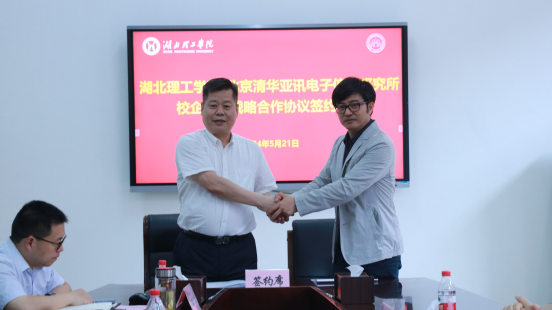 李社教对北京清华亚讯电子信息研究所和上海宝新实业有限公司负责人的到来表示欢迎。他向客人介绍了学校办学历程、学科专业建设情况及办学成效,重点介绍了学校以开放的姿态加强同各方面的合作取得的成果。李社教表示,要以签订校企全面战略合作协议为契机,推进数字化建设,建成产业学院;校企合作成果要在黄石新的工业发展布局中产生积极作用,争取在全省乃至全国产生一定影响。