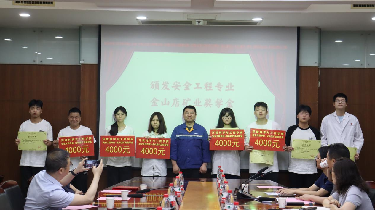武钢资源集团金山店矿业有限公司副矿长杜键为获奖学生颁发“安全工程金山店矿业奖学金”。