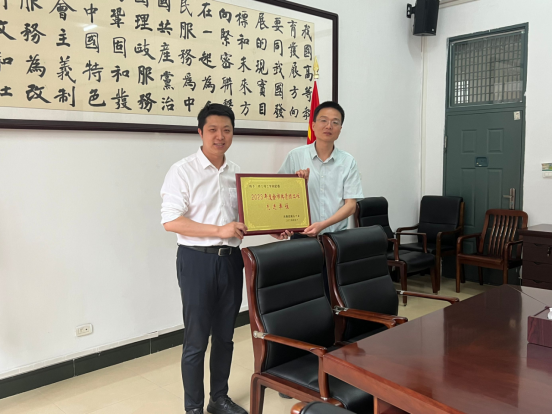 团市委给校团委授发“2023年度全市共青团工作先进单位”奖牌。