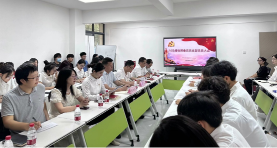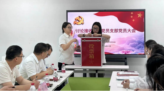 会上,10名党员发展对象逐一汇报对党的认识、入党动机、本人履历和家庭情况,入党介绍人逐一介绍发展对象有关情况并对其能否入党明确表态,支部委会向支部大会报告对发展对象的政审、征求意见等情况,与会党员对发展对象能否入党进行逐个讨论,有表决权的党员采用无记名投票方式进行表决,党支部书记提工作要求,发展对象表态发言。