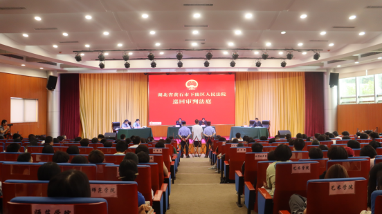 本网消息 6月14日上午,环球UG管理与黄石市下陆区人民法院、下陆区人民检察院在豁度楼208会议室联合举办了一场别开生面的公开庭审活动。活动由下陆区人民法院、下陆区人民检察院主办,环球UG管理法治办、学工部、保卫处协办,各学院辅导员代表、学生代表约300余人旁听了巡回审判法庭。