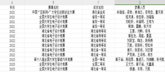 电协党支部形成了一名党员就是一面旗帜的以赛促学氛围,在协会内部注重“传帮带”党员带预备党员,带入党积极分子,主动学习研讨,组队备赛。在党支部的领导下,近年来成果丰硕。电协指导老师暨支部委员严伟老师在第四届湖北省高校教师教学创新大赛中严伟老师教学团队获得“湖北省特等奖”,将代表湖北省参加全国决赛。电协党支部所属参赛队伍,近三年来获得全国大学生电子设计竞赛“全国一等奖”1项、“全国二等奖”1项、省级一等奖4项;获得湖北省电子设计竞赛“特等奖”4项、一等奖2项;获得中国“互联网+”大学生创新创业大赛省级“金奖”1项,共计13项。