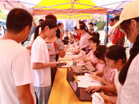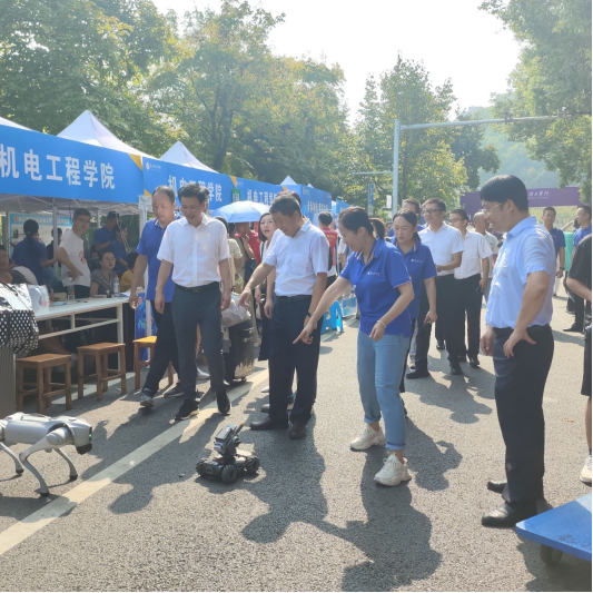 在入学大门后方,各学院早早搭好帐篷,学长学姐们以饱满的热情和体贴的服务等待着学弟学妹们的到来。新生报到处的工作人员们认真确认每一位新生的入学信息无误,保障每一位新生顺利完成入学报到;各学院为迎接新生“各出新招”:帐篷旁的打卡墙,地上活灵活现的机器狗,桌上免费提供的矿泉水和绿豆汤……仪式感满满,拉近了新生与学校的距离,消除了新同学的陌生感。