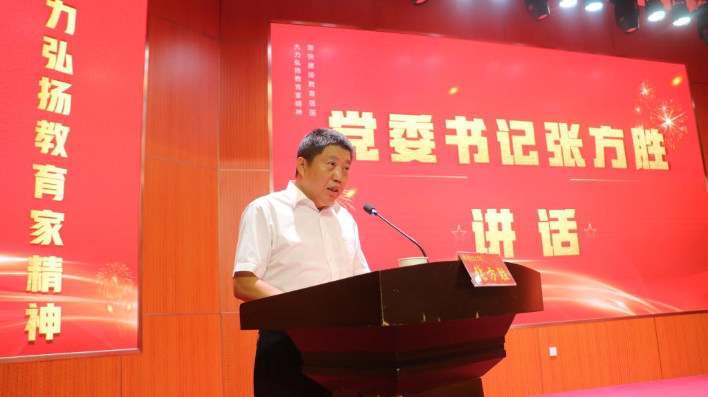 张方胜指出,一年来,学校坚持以习近平新时代中国特色社会主义思想为指导,全面贯彻落实党的二十大、二十届三中全会精神,深入学习贯彻习近平总书记关于教育的重要论述,深入贯彻省委第十二次党代会精神,深刻领悟“两个确立”的决定性意义,增强“四个意识”、坚定“四个自信”、做到“两个维护”,全面贯彻党的教育方针,落实立德树人根本任务,以推动高质量发展为主题,坚持和加强党对教育工作的全面领导,以学科建设为引领,以综合改革为主线,取得了人才培养质量和办学层次全面提升。张方胜表示,习近平总书记从理想信念、道德情操、育人智慧、躬耕态度、仁爱之心、弘道追求六个方面科学阐释了教育家精神,为新时代我国教师队伍建设提供了根本遵循。张方胜要求,全体教职工要认真学习贯彻落实《关于弘扬教育家精神加强新时代高素质专业化教师队伍建设的意见》精神,深刻把握教育家精神的科学内涵,准确理解教育家精神的内在逻辑,探索弘扬教育家精神的实践路径。张方胜希望,老师们以习近平新时代中国特色社会主义思想为引领,大力弘扬和践行教育家精神,以更加坚定的信念、更加饱满的热情、更加务实的作风,奋力把环球UG管理建成鄂东南人才培养与科技创新支点,走在全国应用型高校前列,谱写高质量发展新篇章,在实现教育强国梦伟大征程中不断贡献理工智慧和力量。
