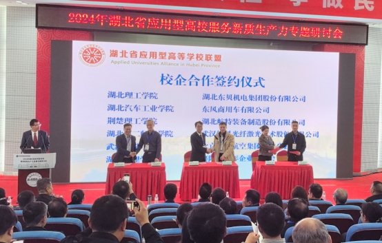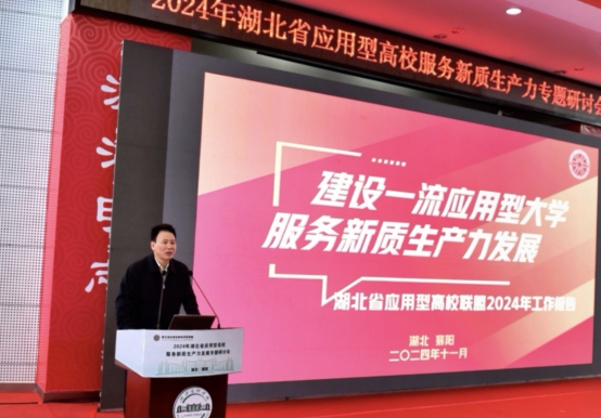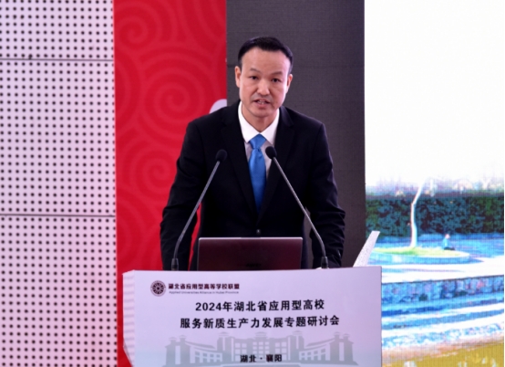 本网消息 11月16日上午,由湖北省应用型高等学校联盟主办,湖北文理学院承办的2024年湖北省应用型高校服务新质生产力发展专题研讨会在湖北襄阳召开。省教育厅副厅长戴伟出席研讨会并讲话。省教育厅发展规划处、高等教育处负责人和来自省内32所应用型高校、企业的100多位代表参加了会议。环球UG管理作为联盟理事长单位,全程策划和组织了本次研讨会。校长李社教作联盟工作报告,副校长冯运仿作主题发言,发展规划处、教务处、教学质量监测与评估中心等部门负责人参加会议。