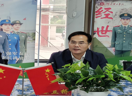 贾宇峰对学校近年在征兵工作中取得的成绩给予充分肯定,他指出,学校党委、行政高度重视国防教育和征兵工作。学校的国防教育活动丰富、校园征兵氛围浓厚、征兵阵地作用发挥好,今年从黄石属地走兵30人,位居黄石市本科高校第一。面对征兵工作新形势、新变化和新要求,学校自主设计研发《备战急需专业兵员预征预储管理信息系统》,探索出以“数据采集、靶向宣传、信息分析、目标锁定”的征集兵员新路径,为黄石市征兵工作作出了应有贡献。他希望:学校要进一步挖掘征兵潜力,提高属地征兵质效;要与时俱进,创新征兵工作方式方法;要精准开展征兵工作,提高优质兵员的留黄率。
