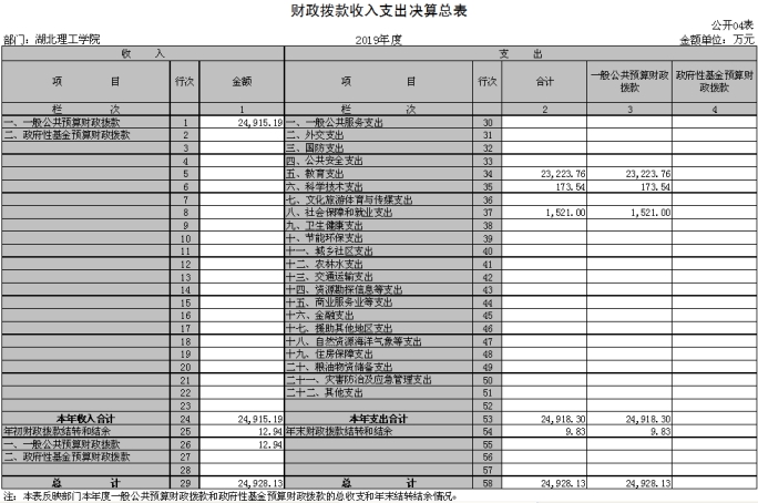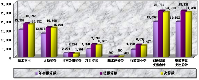 2019年财政拨款支出总预算25,730.95万元,实现财政拨款支出24,918.30万元,本年结转项目资金9.83万元。