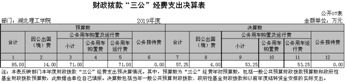 2019年三公经费预算执行数105.83万元,预算执行率57.68%。其中:1)公务用车购置及运行费65.72万元,包括公务用车购置10.88万元,公务用车运行维护费53.84万元。学校公车保有量为18台;2)因公出国(境)费30.54万元,共4团组、7人;3)公务接待费9.57万元,共123批、558人次。