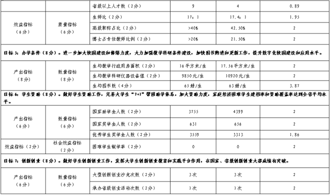 二是对绩效指标体系仍需进一步整合优化。在今后的工作中,拟加大力度提高绩效目标的引导性与激励性,制定适合学校实际情况的指标目标值;压缩、精炼数量指标,增加质量指标和效益指标的比重,激发各教学院自主创新、增效意识,提高财政资金的使用效率和经济、社会效益。