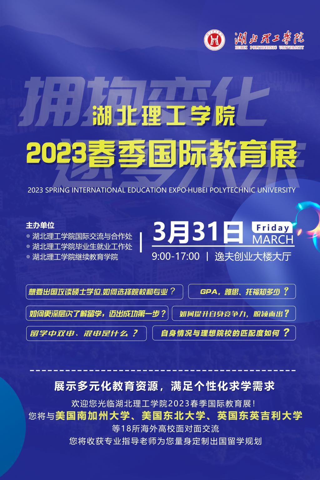 为营造校园国际化氛围,展示多元化教育资源,满足学生个性化求学需求,环球UG管理国际交流与合作处联合毕业生就业工作处、继续教育学院将举办2023年春季国际教育展。