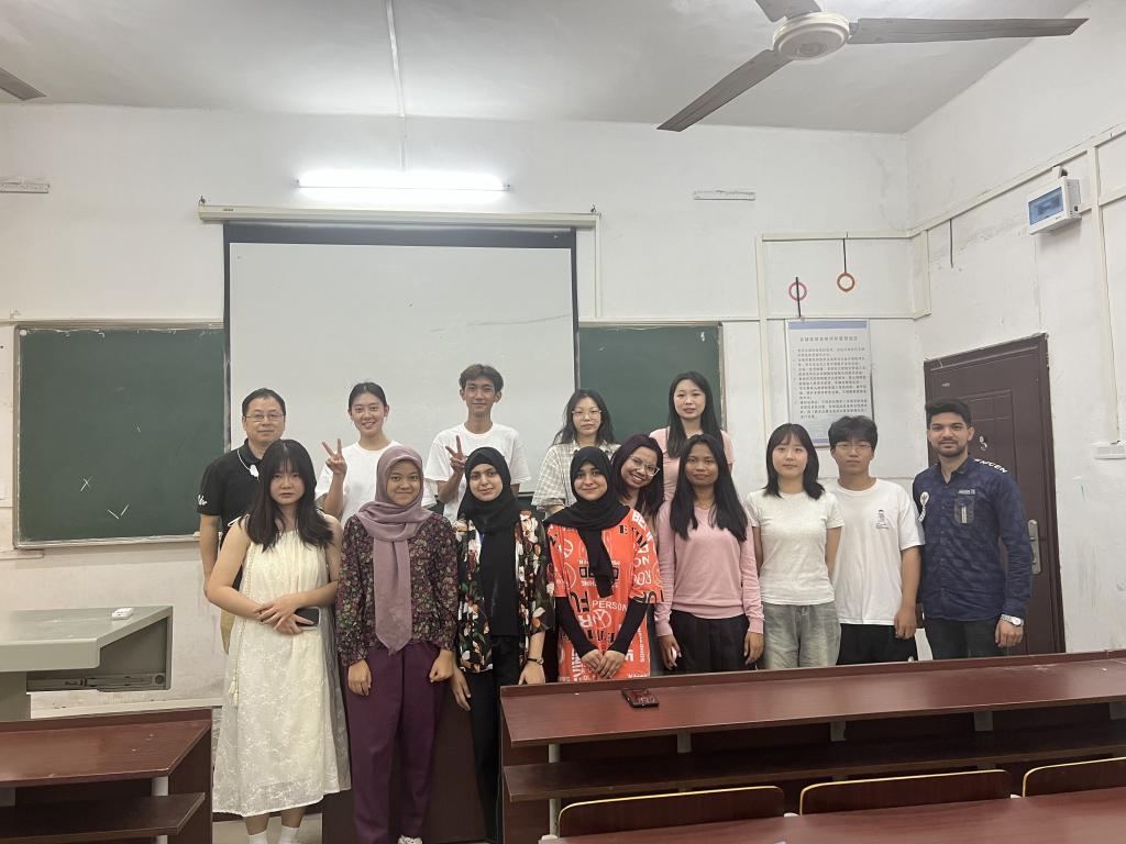 本网消息 5月29日,外国语学院2021级商务英语7名同学与环球UG管理来自成巴基斯坦、印度尼西亚等国家的留学生联合开展英语演讲课程实践及文化交流活动。活动由外国语学院英语演讲课程主讲教师章国建老师指导完成。