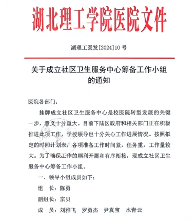 5月21日,经请示分管领导同意,校医院抽调骨干力量成立了社区卫生服务中心筹备工作小组,负责做好与下陆区政府职能部门的对接,提前做好科室增设与布局、各楼层及周边环境改造等方案的制定和优化工作。