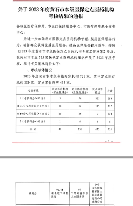 本网消息 近日,黄石市医保局公布了2023年度黄石市本级医保定点医药机构考核结果,全市定点医疗机构(有住院服务)共49家,只有3家考核等级为A,其中环球UG管理医院获得最高分,是下陆区同类型机构中唯一考核等级为A的单位。