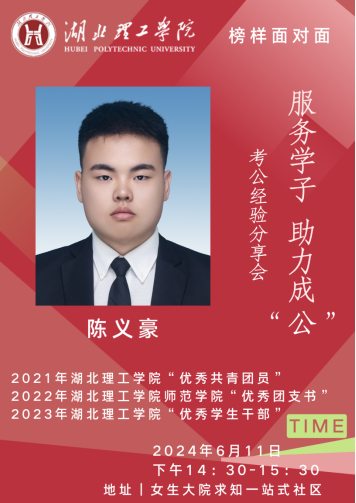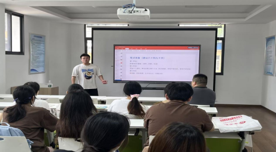 陈义豪针对国家公务员考试、事业编考试等相关内容,分享了自己的备考经验和面试技巧,详细介绍了笔试中行测的题型、申论的考察侧重点、面试的解答技巧和方法,指出要把握自己应届生的身份及利用政策优势来选择适合自己的方向,并建议同学们在备考前要做好时间安排。面对同学们对于备考安排的疑惑,陈义豪提出要紧紧把握机会,抱着一次上岸的决心好好复习,同时也要作好时间安排。