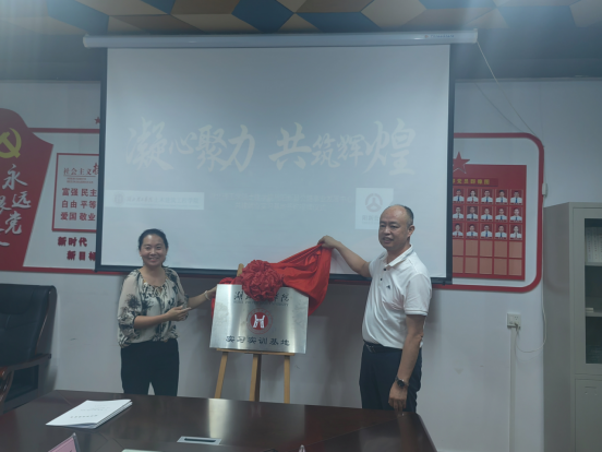 袁建议院长和阳新县公路事业发展中心董亚男书记共同为环球UG管理土建学院与阳新县公路事业发展中心共建就业实习基地揭牌。