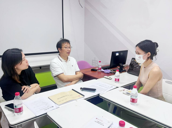 会后,余卫华书记和胡增裕副书记与2021级舞蹈表演1班李筱彤同学展开了一对一的交流,针对学生大四期间的学业规划和发展方向提出了精准的建议与帮助。