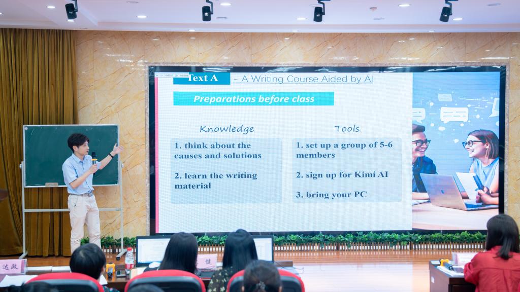 占凌轩老师的《大学英语》课程以OBE教学理念为指导,通过讨论网络暴力问题,结合人工智能工具Kimi AI,指导学生掌握议论文的写作结构与技巧。在课堂上,学生通过教师搭建的写作支架和AI辅助,不仅提升了写作能力,还培养了批判性思维和数字公民意识。