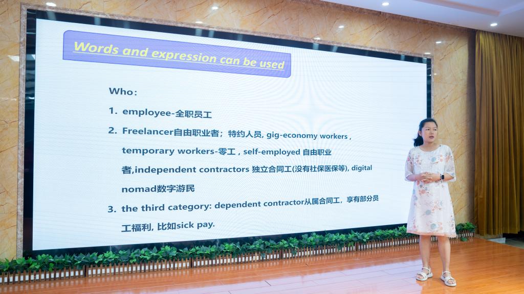 范楚舒老师的《大学英语》课程通过文字的力量,展现了艺术专业在零工经济背景下的独特魅力和文化价值。通过让学生结合个人经历与社会观察,从跨文化视角出发,探讨艺术专业与零工经济的交融点,分析两者之间的相互影响和促进作用。课堂活动以小组辩论形式,让学生们充分思辨零工经济的优缺点,力求展现艺术专业在全球化、网络化背景下的创新与发展。