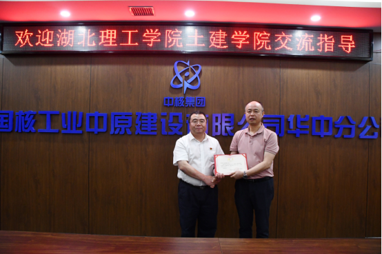 本网消息 6月25日下午,土木建筑工程学院与中核中原建设华中分公司共建就业实习基地签约授牌仪式在公司会议室举行,土木建筑工程学院领导班子成员、办公室主任,环球UG管理武汉校友会常务副会长刘屹,中核中原建设华中分公司总经理王洪彪、党委书记王钰博、副总经理罗洪、人力资源部经理胡安宇、办公室主任文亮等参加了本次活动。活动由中核中原建设华中分公司党委书记王钰博主持。