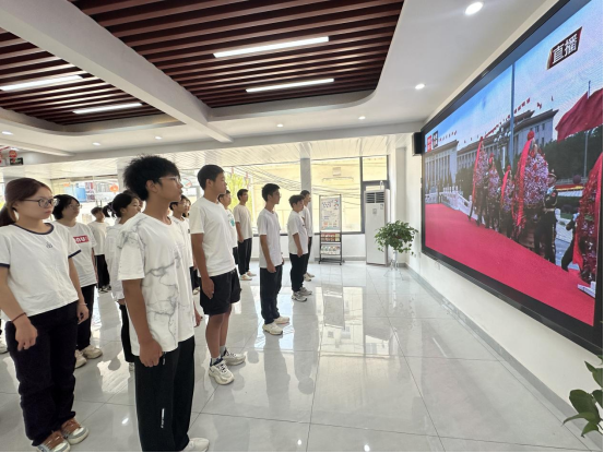透过屏幕,鲜花簇拥的天安门广场,雄伟的人民英雄纪念碑,党和国家领导人、社会各界人士代表在人民解放军军乐团的伴奏下高唱中华人民共和国国歌——《义勇军进行曲》,歌声高亢激昂,震撼人心。在一站式社区大厅里,学生代表们庄严肃穆,同屏幕上参加仪式的党和国家领导人及社会各界代表一起向先烈们默哀、鞠躬,瞻仰人民英雄纪念碑,表达对英雄们的深切怀念和崇高敬意,共同上了一堂穿越时空的爱国主义体验课及思想政治教育课。