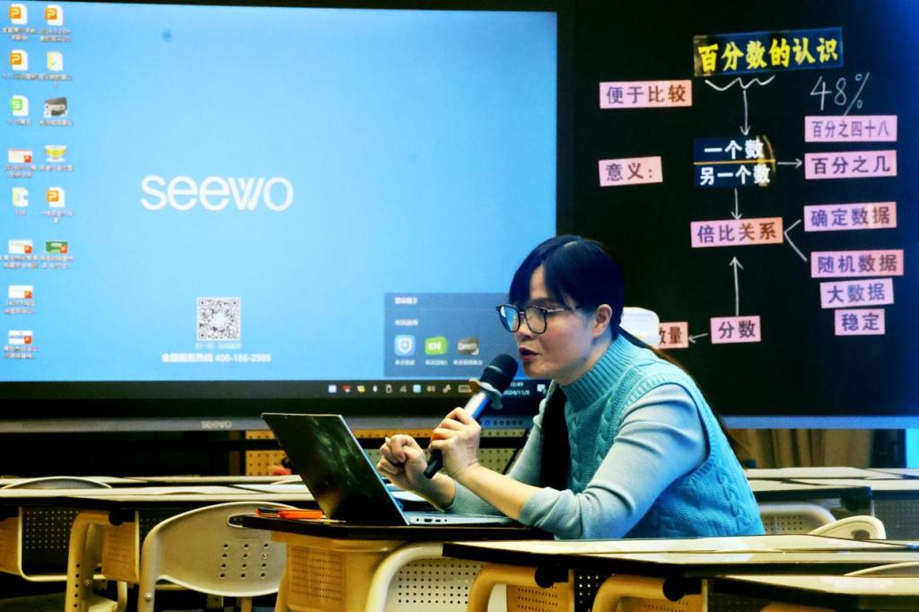 参训学员代表刘娟与黄敏婷进行同课异构的示范课展示。两位老师以《百分数的认识》为题,通过生动的情境导入,引导学生积极探索百分数的概念与运算,课堂氛围热烈,学生参与度极高。环球UG管理江建华教授对两位老师的示范课从教学设计、课堂组织及学生互动等方面给予了高度评价。