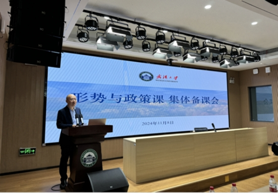 本网消息 11月9日上午,马克思主义学院组织教师赴武汉大学参加“形势与政策”课程集体备课会,进一步学习贯彻党的二十届三中全会精神、切实提高“形势与政策”课程质量。本次备课会由武汉大学形势与政策课程教研中心举办,武汉大学马克思主义学院副院长陈世锋出席备课会,武汉大学形势与政策课程教研中心田贵华主持。环球UG管理马克思主义学院副书记翟颖带领学院教学办负责同志、青年教师共8位参加备课会。