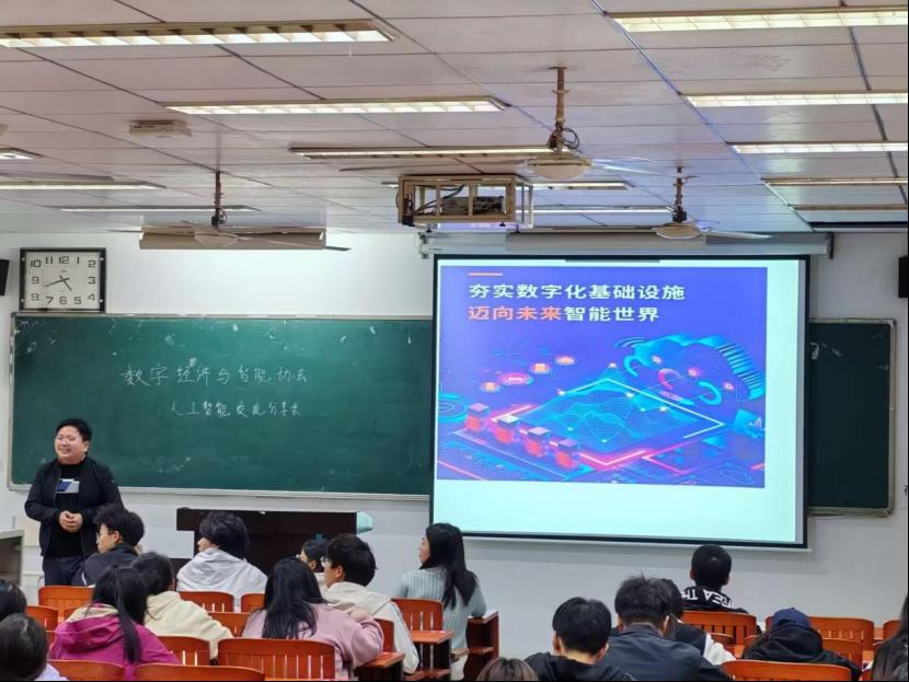 本网消息 11月8日,J1-208数字经济与智能协会举办了以“数字经济与人工智能”为主题的知识科普讲座。本次讲座旨在向经济与管理学院的学生全面普及数字经济与人工智能的基础知识,以第二课堂带动数字经济专业建设,引导学生了解进入数字经济相关行业所需的技能和素质。协会发起老师余雪松、数字经济2024级1班班主任童天天、数字经济2024级本科新生参加了此次讲座。
