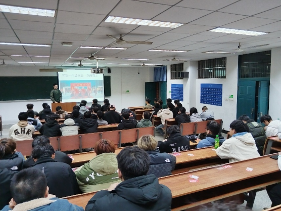 本网消息 老兵故事心中刻,爱国情怀永不落。12月5日晚,机电工程学院和外国语学院在J4-301联合举办老兵讲故事活动。本次活动由黄磊老师主持,机电工程学院三位退役士兵同学应邀讲述他们的军旅故事,两院共计100余名学生参加。