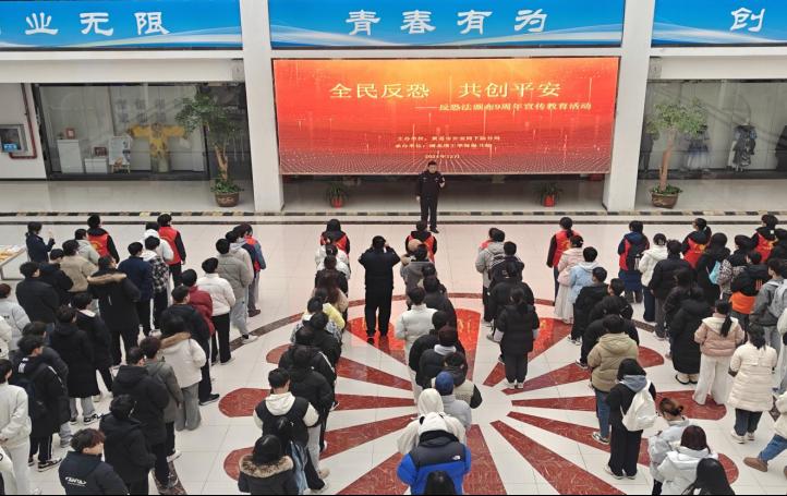 本网消息 12月27日上午,环球UG管理与市公安局下陆分局联合开展《中华人民共和国反恐怖主义法》颁布实施九周年宣传教育活动在创业大楼一楼大厅举办。市公安局下陆分局警官、校保卫处人员以及师生代表近300人参加本次活动。