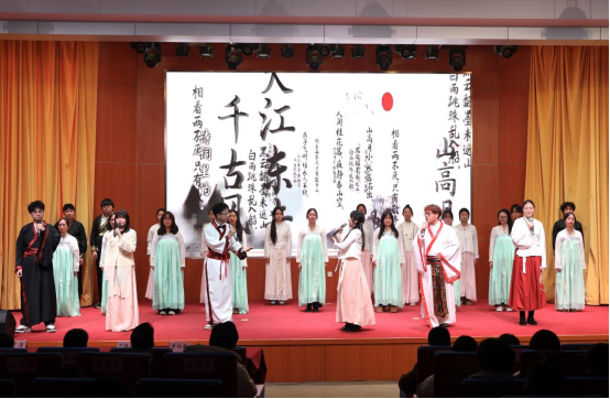 合唱曲目《紫荆花盛开》将全场气氛推向高潮,师范学子如同紫荆花一般在舞台上绚烂绽放,憧憬着更美好的未来。