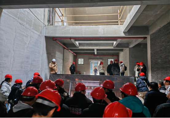 在项目负责人的热情接待下,师生们有序进入施工现场。他们头戴安全帽,怀揣着对专业知识的渴望与探索精神,聆听了负责人对项目整体规划的详细讲解。大冶墈头老街作为承载着深厚历史文化底蕴的区域,不仅要保留老街原有的风貌特色,如古旧的建筑外观、石板路等,还要融入现代城市功能需求,实现传统与现代的完美融合。