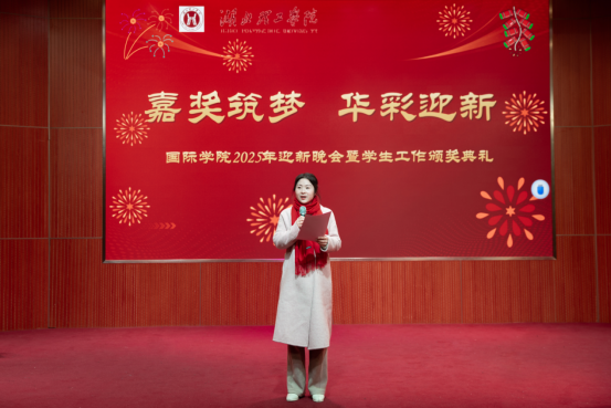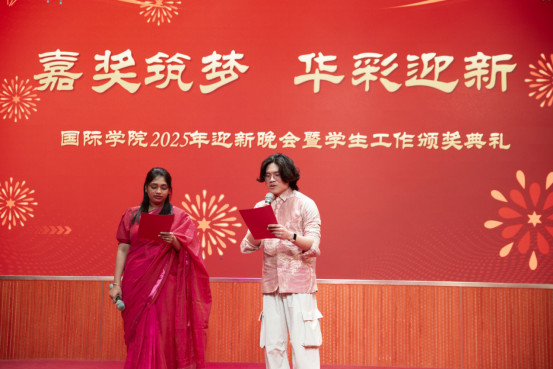 本网消息 1月14日晚,国际学院“嘉奖筑梦 华彩迎新”2025年迎新晚会暨学生工作颁奖典礼在豁度楼208报告厅举行。国际学院全体师生与受邀嘉宾欢聚一堂,共同度过了一个欢乐、难忘的夜晚。