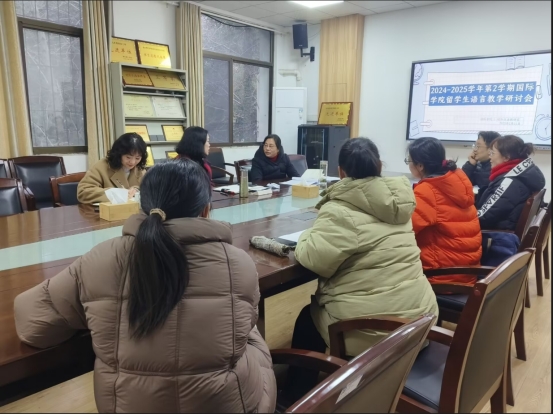 本网消息 2月11日下午,国际学院在401会议室召开来华留学生汉语教学研讨会。对外汉语教研室主任缪杉莎主持会议,国际学院院长李莉、党总支书记郭淑英、副院长李雅颖、对外汉语教研室全体教师及教学办负责人参加会议。