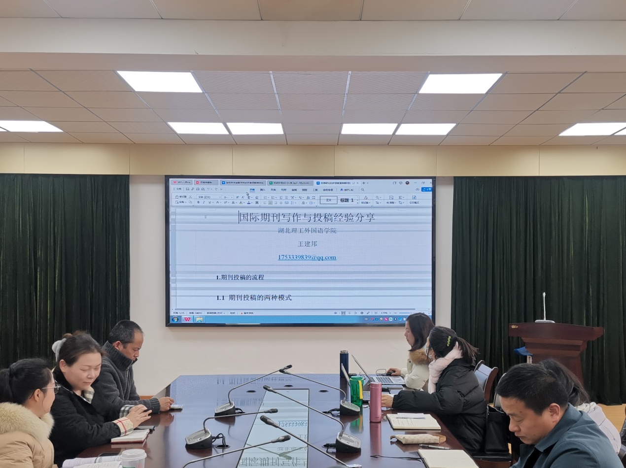 随后,王建邦博士分享了期刊投稿的经验。他从期刊投稿的完整流程讲起,详细介绍了投稿的两种模式,并阐述了选刊应遵循的原则以及在选刊过程中的注意事项。王建邦推荐了部分外语和教育类国际期刊,并结合自己在论文撰写和投稿过程中积累的丰富经验,与老师们进行了深入细致地交流。王建邦鼓励老师们“树立作为一名‘学者’的坚定立场”,严格把关论文撰写的每一个环节,确保论文品质。他强调,教师们在撰写论文时要坚定自身的分析立场,同时保持开放的学习心态,认真对待来自各方的修改意见,通过不断地精心打磨,论文质量一定会得到稳步提升。