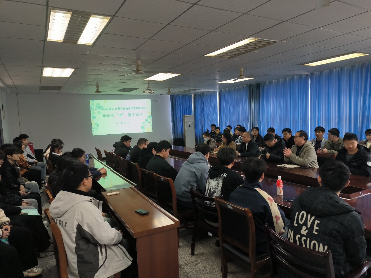 本网消息 2月27日,材料科学与工程学院在K3-401会议室举办2025届毕业生考研学生座谈会。陈跃院长、冯伟副院长、胡敏副书记以及教师代表和50余名考研同学共同参加。座谈会由胡敏主持。