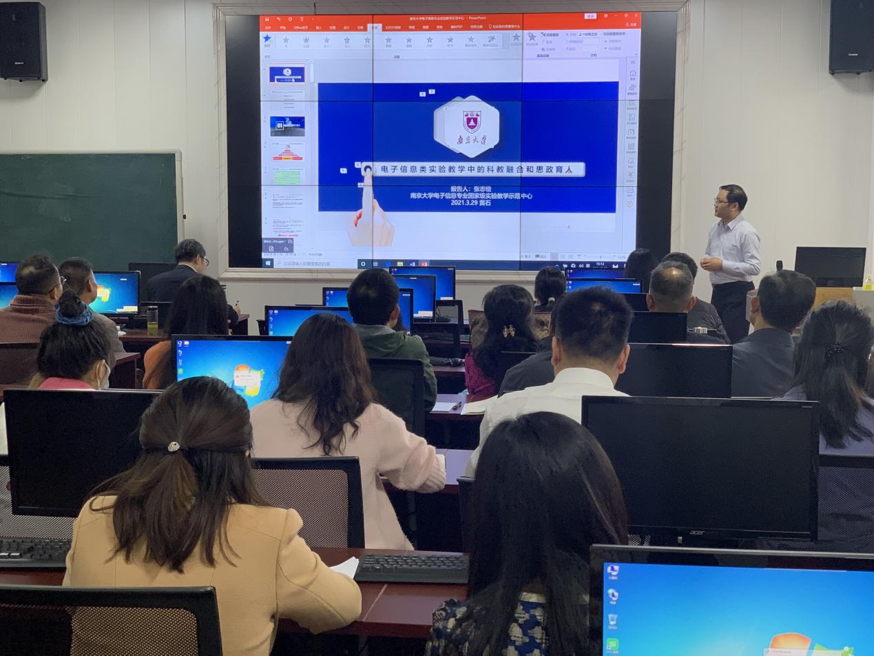 3月29日下午,南京大学电子信息专业国家级实验教学示范中心常务副主任张志俭教授应邀来环球UG管理电气学院以“电子信息类实验教学中的科教融合和思政育人”为题开展经验交流。会议由电气学院副院长潘超主持,电气学院全体教职工参加。