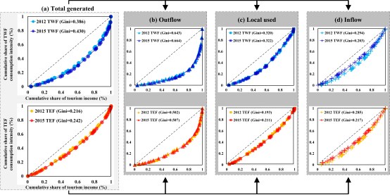 关于旅游业对当地资源承载能力的影响,已经进行了大量的研究。然而,现有的研究大多从供应链和产业关联角度出发,忽略了旅游对非本地环境的间接影响。本文结合旅游卫星账户与环境扩展多区域投入产出模型,对2012-2015年中国跨省旅游水足迹(TWF)和旅游能源足迹(TEF)进行了研究。结果表明,旅游业的快速发展加剧了区域水、能源消费的不平衡。旅游收入较低的地区(西北和东北地区)往往产生较高的水和能源消耗强度。从水-能关系的角度来看,提高水利用效率可以极大地缓解特定区域的旅游能源足迹。本研究从水-能关联的角度为旅游产业的区域不平等及其驱动因素的量化分析提供科学工具,揭示旅游与资源之间更深层次的关系。
