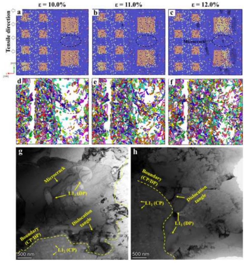 《International Journal of Plasticity》(影响因子8.5,一区)是国际公认的机械工程、固体力学领域顶级期刊。该研究提出了一种CALPHAD-MD(相图计算-分子动力学)耦合方法,以定量地揭示具有特定成分和微观结构的沉淀强化Cu-Ni-Al合金的微观结构与力学性能之间的关系,该方法可以有效地扩展到新型沉淀强化合金的设计中。