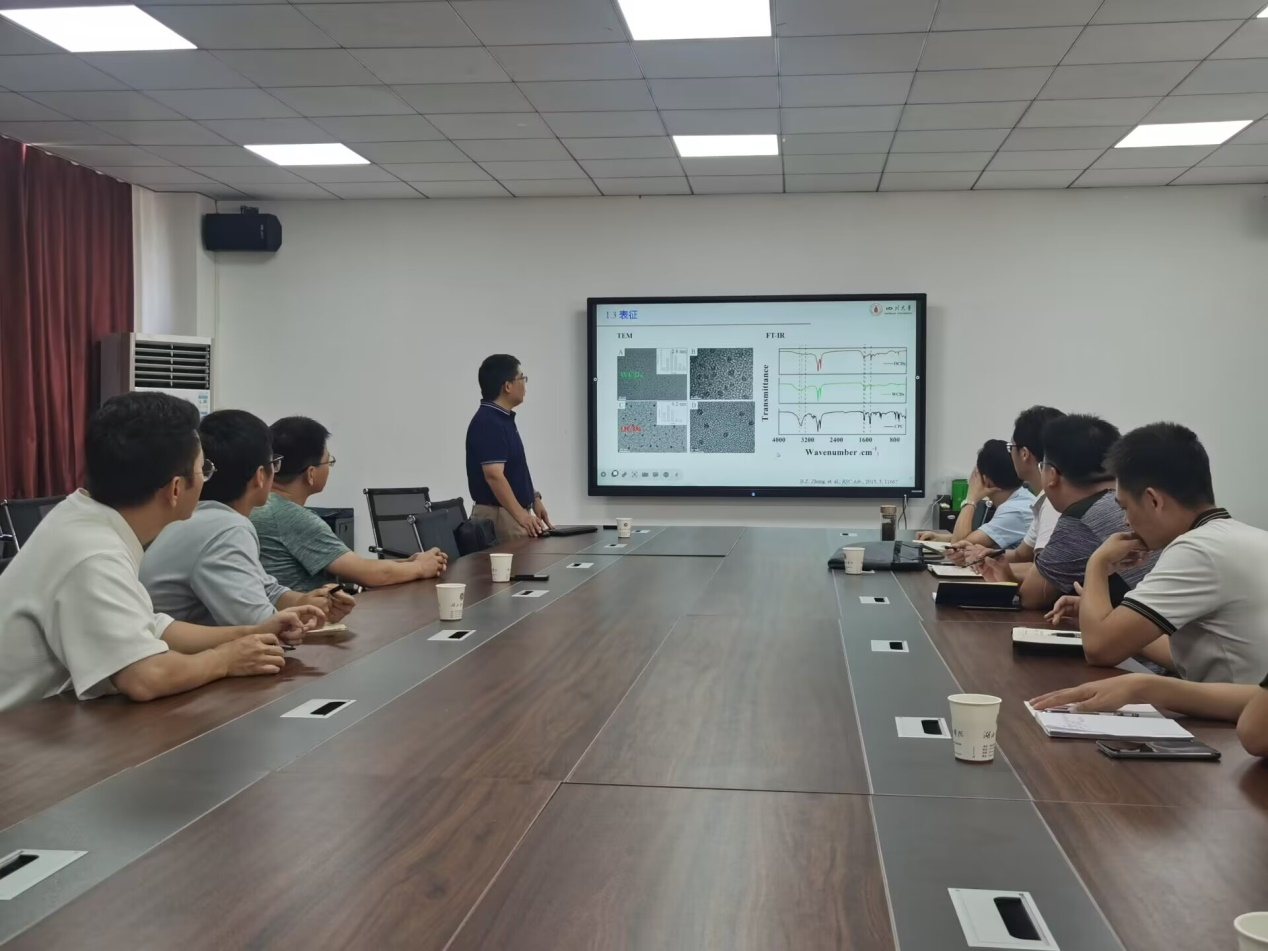 郑保战教授主要围绕疏水性碳量子点的绿色大规模可控制备与荧光应用、两亲性碳量子点的制备与其污染物检测及水处理应用进行了详细报告,深入浅出地介绍了其研究团队针对航空、食品等行业的特定需求进行的疏水性、两亲性碳量子点的研发和应用。报告内容涉及化学、材料、环境等多学科内容,对开拓到场师生的知识边界、启迪研究思路很有帮助。到场师生结合各自的研究课题与郑教授进行了热烈的讨论交流。(通讯员:汪东亮)