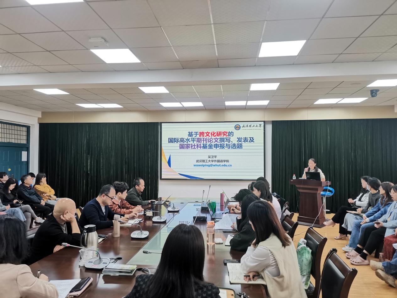 本网消息 10月21日下午,外国语学院邀请武汉理工大学吴卫平教授来校作了题为“基于跨文化研究的国际高水平期刊论文撰写、发表及国家社科基金项目申报与选题”的讲座。外国语学院副院长管振彬主持,全体教师聆听学习。