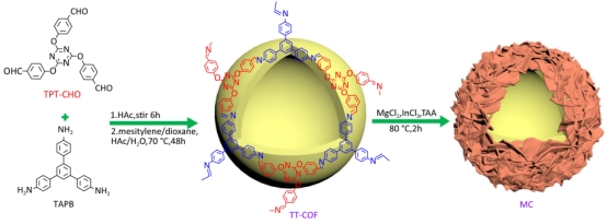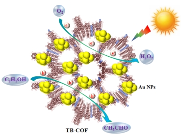 在TOP期刊Chinese Journal of Catalysis发表了以“Hollow spherical covalent organic framework supported gold nanoparticles for photocatalytic H2O2production”为题的论文,阐明了将助催化剂金纳米粒子负载在共价有机框架材料(COF)表面, 可以有效促进光生载流子的迁移与分离, 从而获得较好的光催化产H2O2性能。金纳米粒子作为助催化剂能显著促进COF光催化产生H2O2,可为设计高效光催化产生H2O2的COF基催化剂提供重要参考。