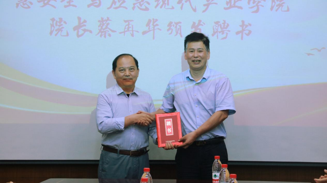蔡再华表示,支持教育事业是企业义不容辞的责任,对受聘智慧安全与应急现代产业学院院长感到万分荣幸,今后将与学校一起协力推进产教融合,加大企校交流,提高应用型人才的培养质量,并勉励同学们好好学习,刻苦钻研。