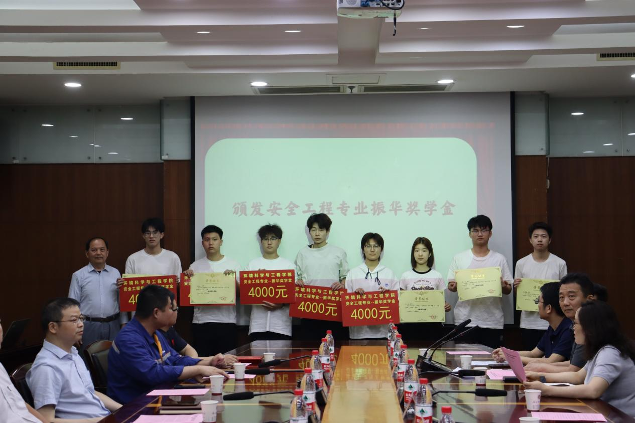 湖北振华化学股份有限公司董事长蔡再华为获奖学生颁发“安全工程振华奖学金”。