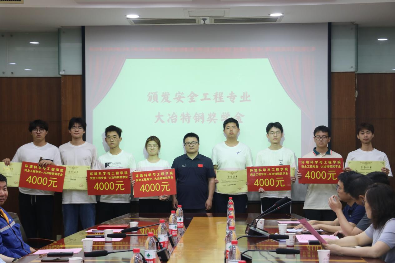 大冶特殊钢有限公司安全副部长为获奖学生颁发“安全工程大冶特钢奖学金”。